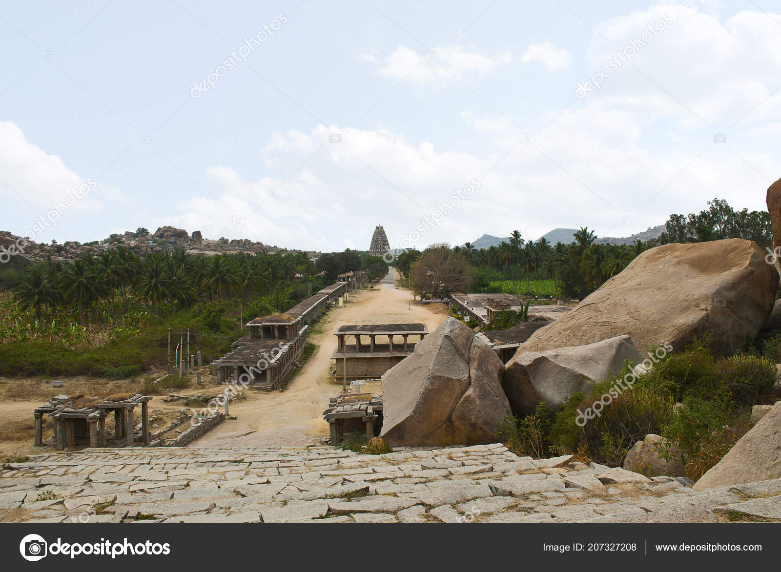 View Of The Virupaksha Temple From The Eastern Gateway Of Hampi Bazaar Hampi Karnataka Sacred Center Stock Image Image Of Century Landmark 123132955