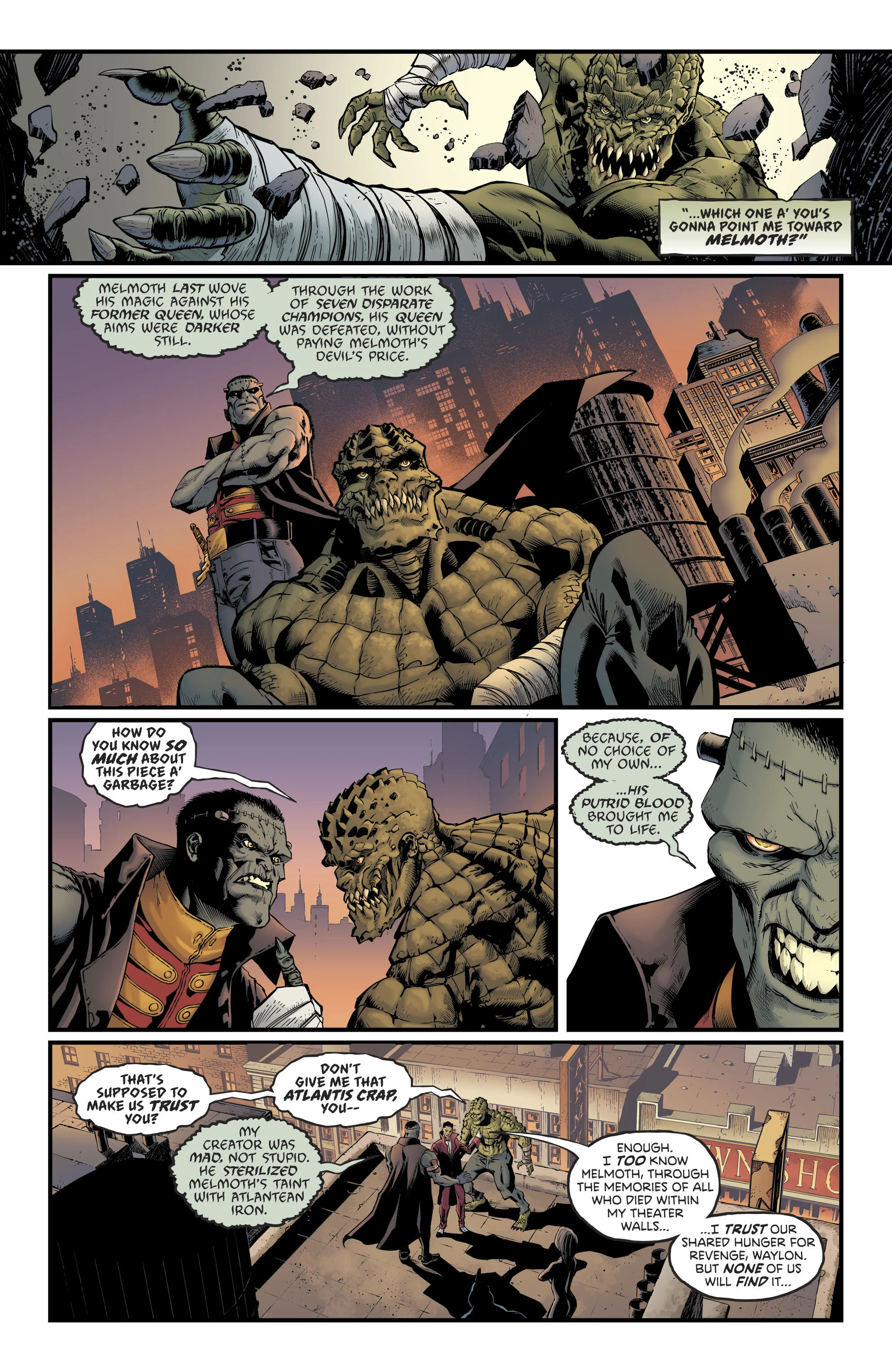 An alliance of monsters with as much baggage as their green skinned leader. Also featured is bruce wayne who is the focus of the interlude chapters. The gotham city quarantine zone now referred to by locals as monstertown is where frankensteins new mission has taken him and where the unholy rituals being practiced in plain sight will demand a new kind of team.