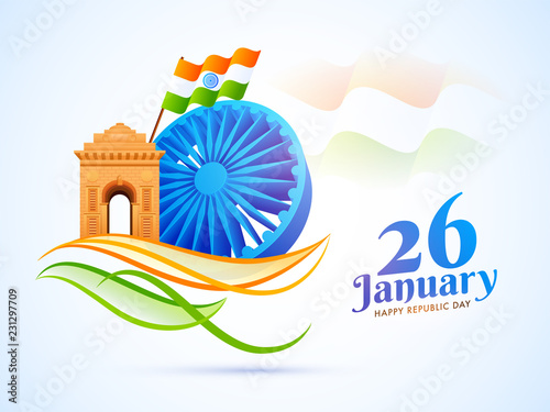 26 January Happy Republic Day Poster Or Template Design With India Gate Tricolor Flag And Fighter Jet On White Background Stock Illustration Download Image Now Istock
