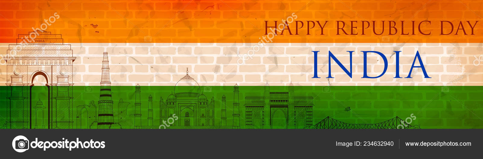 Famous Indian Monument And Landmark Like Taj Mahal India Gate Qutub Minar And Charminar For Happy Republic Day Of Stock Vector Illustration Of January Green 136890890