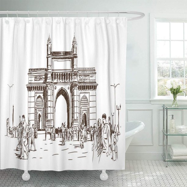 Pknmt Gateway Sketch Of Gate Way India Mumbai Maharashtra In Skyline Culture Hand Waterproof Bathroom Shower Curtains Set 66x72 Inch Walmart Com Walmart Com
