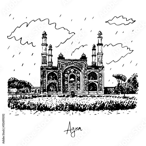 Main Gate To The Akbar S Tomb In Sikandra A Suburb Of Agra Uttar Pradesh India Vector Freehand Pencil Sketch Buy This Stock Vector And Explore Similar Vectors At Adobe Stock
