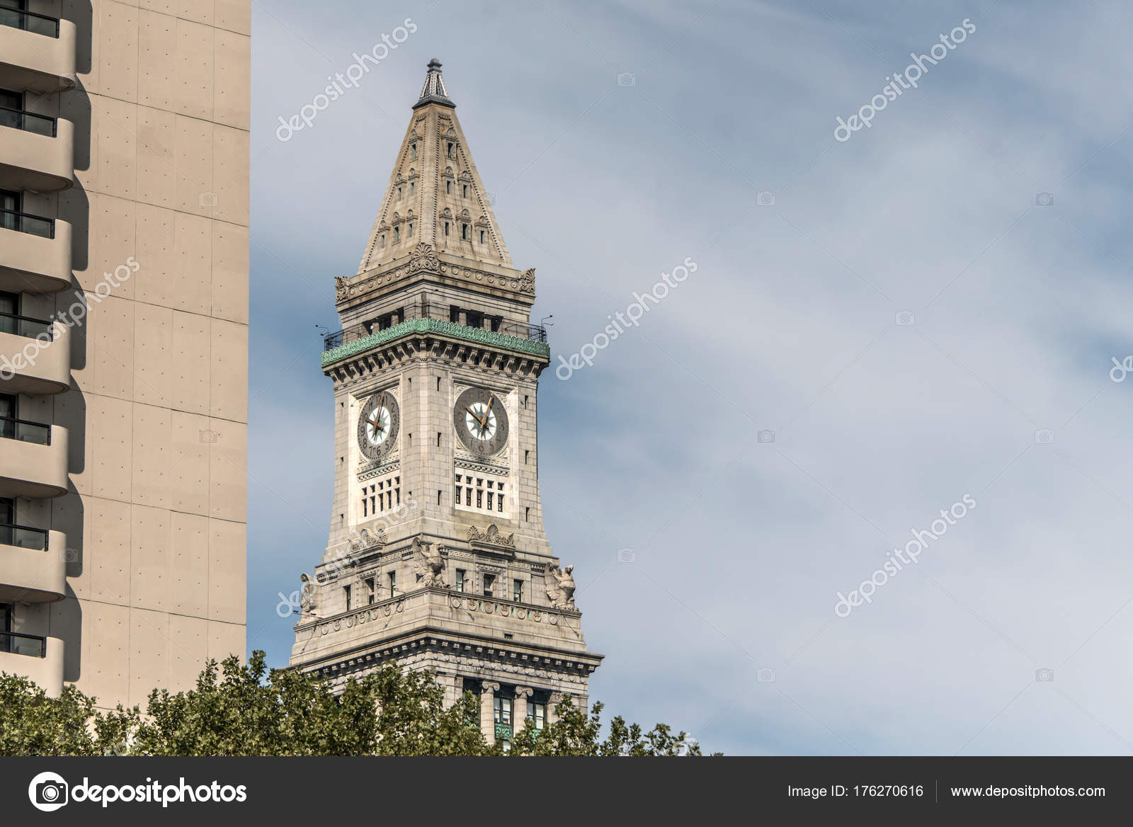 View Of The Historic Custom House Skyscraper Clock Tower In Skyline Of Boston Massachusetts Usa Stock Photo C Donogl 176270616