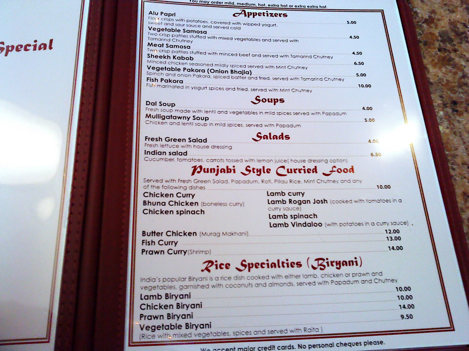 Menu Picture Of India Gate Erbil Tripadvisor